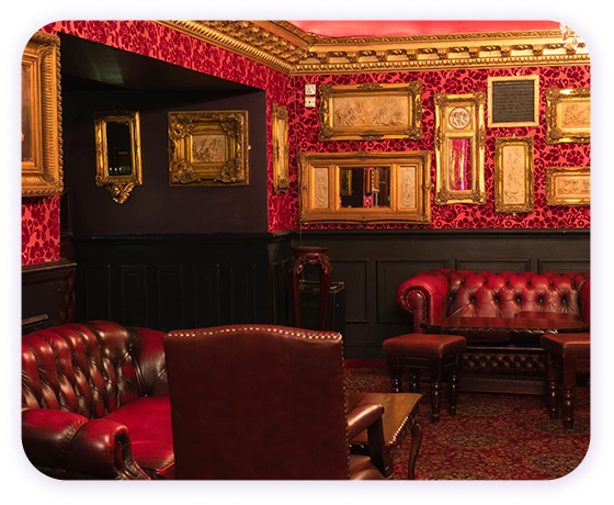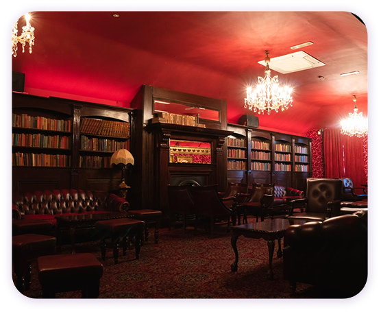 The Library is a Georgian style function room, and comes complete with its own bar, outdoor rooftop terrace, sound system, comfortable seating & tables, and its own toilets.